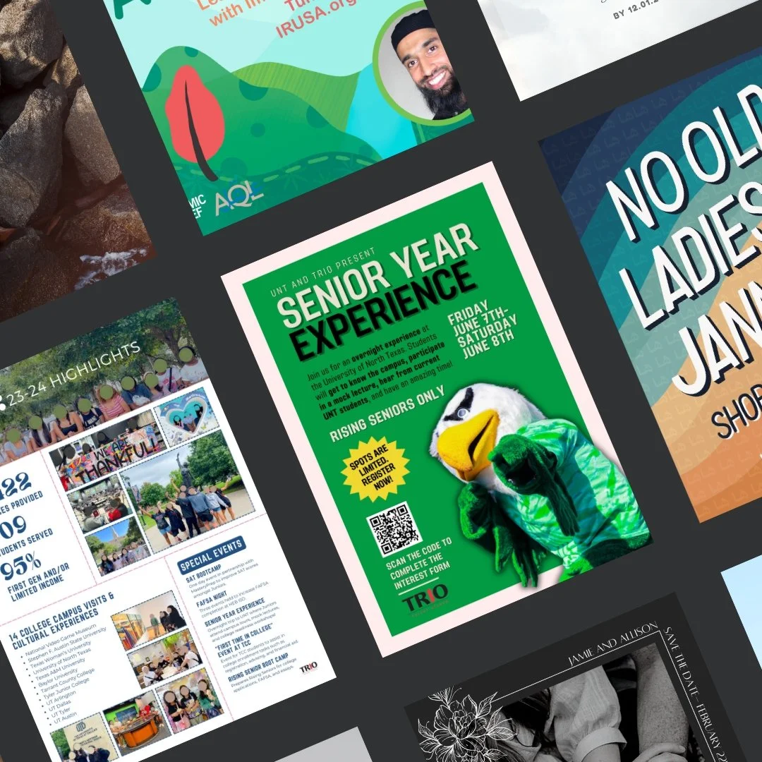 Strong record of employing iterative design processes, managing multiple projects, and working under limited supervision. I have 9+ years of professional experience in high-pressure & deadline-driven fields including healthcare, higher education, child welfare, and non-profits.