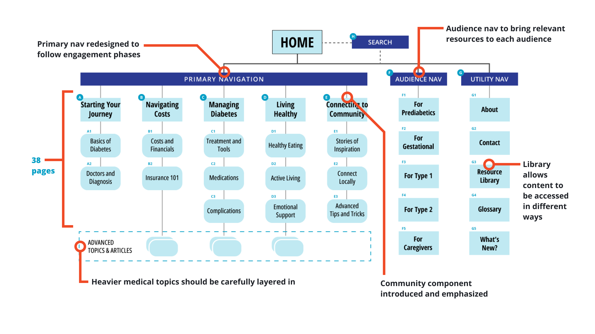 I led the content design team in increasing accessibility of online diabetes information and resources. My strategy was informed by the building blocks—build trust, encompass, and clarify.
